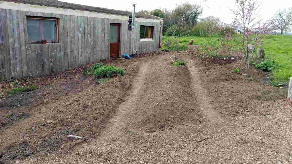 Ce projet s’est fait en accompagnement avec le propriétaire qui souhaitait créer un potager associé à des arbres fruitiers et une serre. La conception des planches permanentes est faite pour capter au maximum les eaux de pluie sur ce terrain légèrement en pente et sableux.
